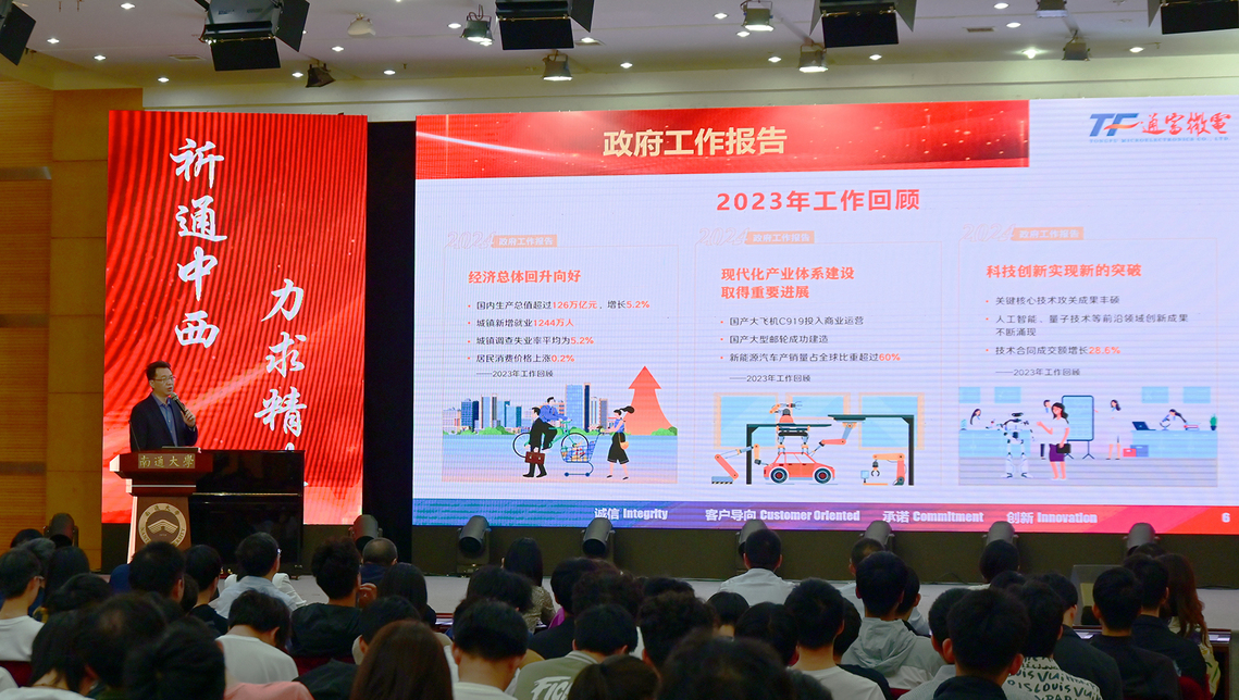 5月15日下午,第十四届全国人大代表、通富微电子股份有限公司董事长兼总裁、现场足球直播 特聘院长石磊应邀来校做“新质生产力”专题报告。