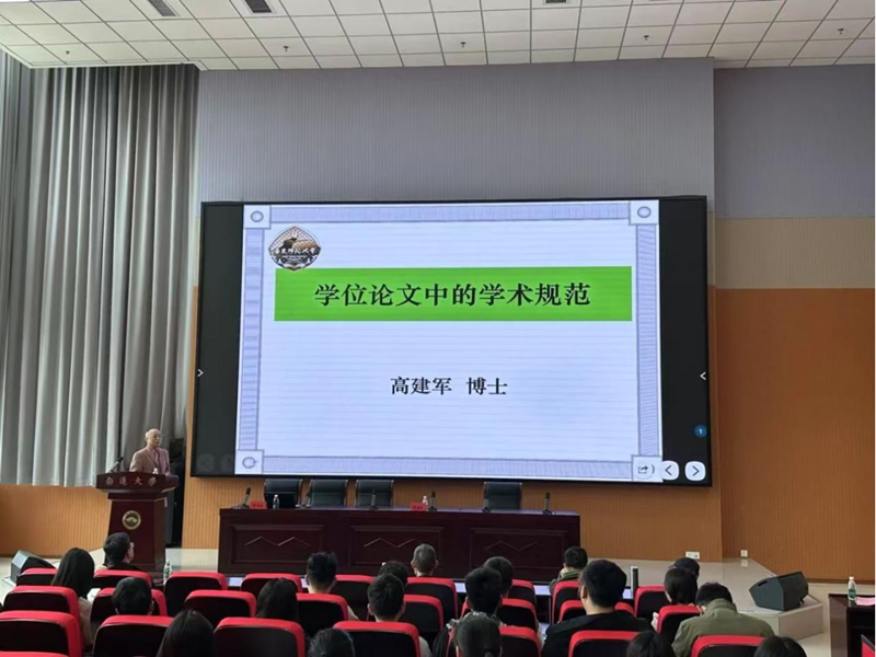 高建军从“什么是学问”导入,指出掌握事实规律是一种学问,恰当地处理事情,总结出来的规律就是文章。随后从学位论文的总体要求、结构规范、工作量、规范性、准确性、创新性等几个方面讲述了学位论文的学术规范。讲座现场展开了热烈的互动交流,导师们纷纷表示受益匪浅。